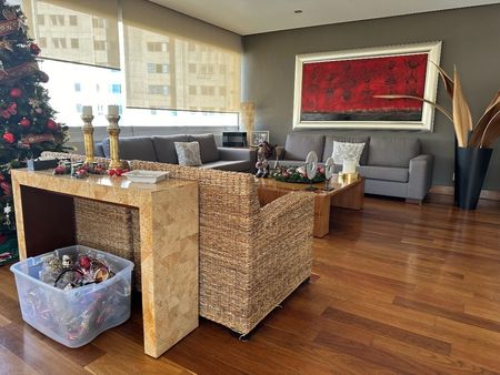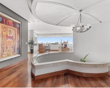 ** El departamento tiene finos acabados , pisos de madera tzalam y fino marmol, calefacción hidrónica en recamaras, family room.