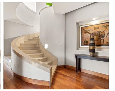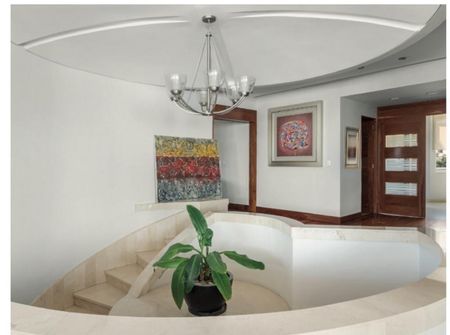 Hermoso recibidor con techos de doble altura y espectacular escalera de caracol
